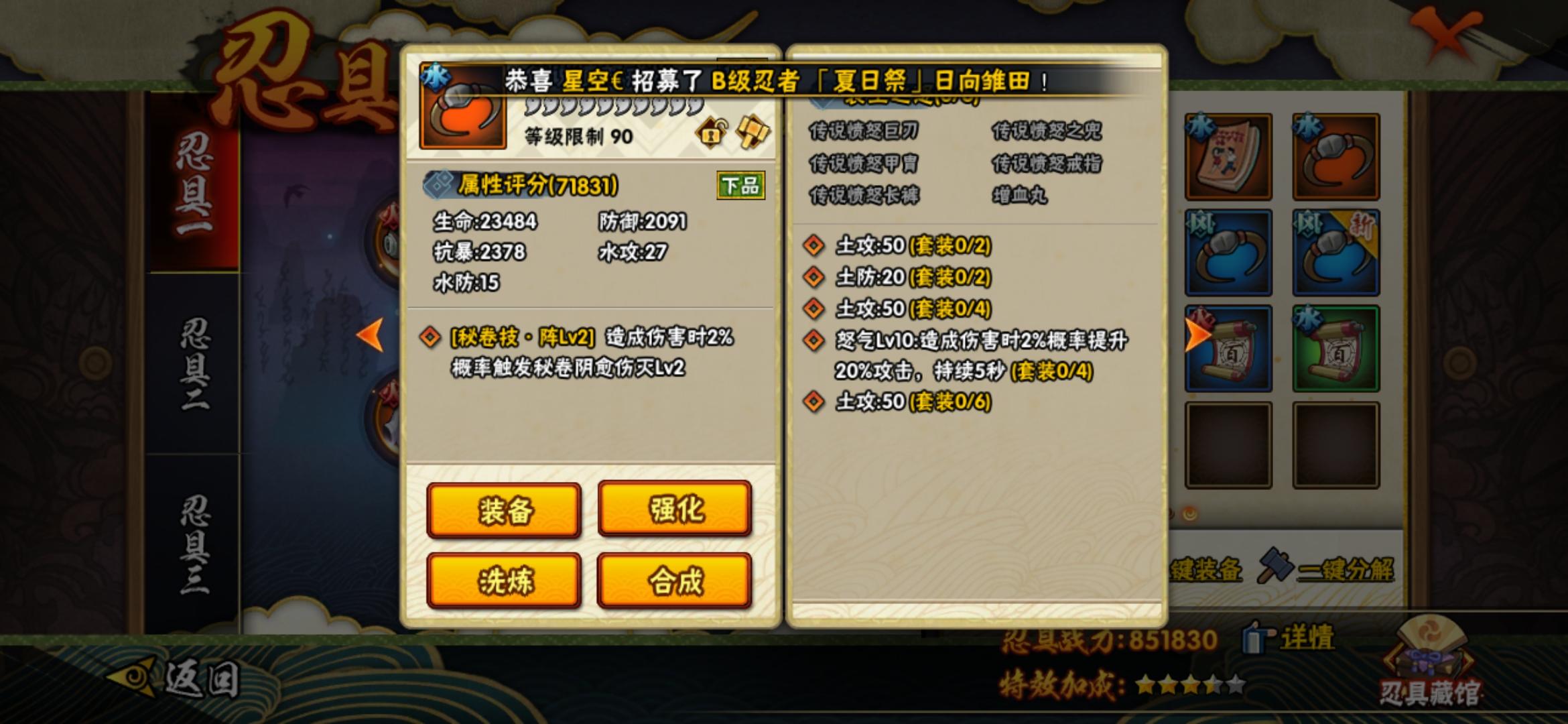 忍具我要不要换成愤怒两件套
