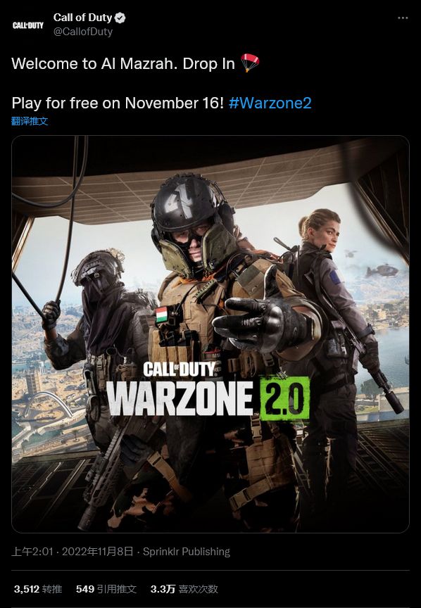 今天(11 月 8 日),动视通过《使命召唤》官方推特公布了即将推出的《使命召唤:战区2.0》全新艺术图。