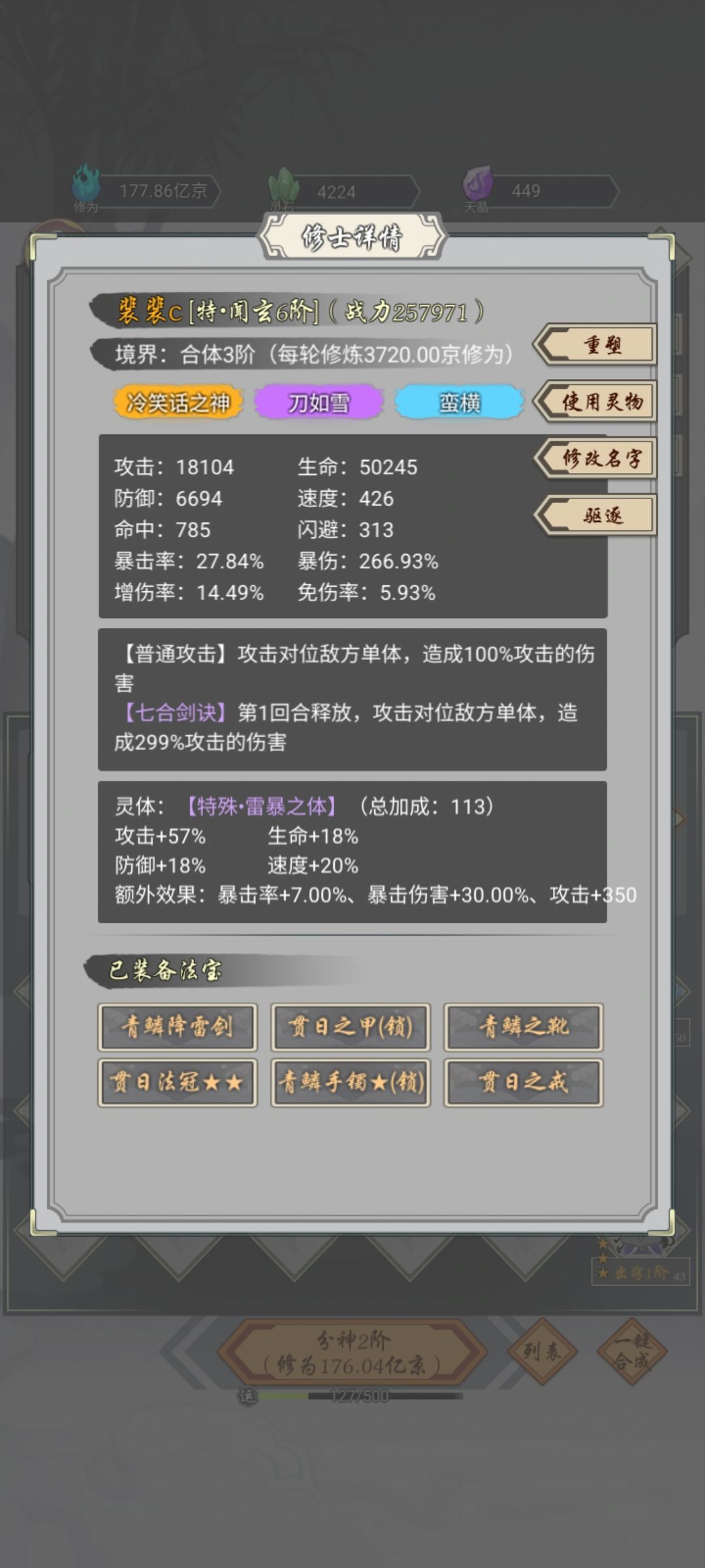 更新属性图,当时是265层,比这个属性偏低一些