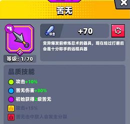 苦无,杀BOSS神器,自瞄,升级后变成手里剑,攻速获得极大的提升,但是杀小怪费劲一些,容易造成被围堵出不来的情况,需要配合守卫者,力场发生器,燃烧瓶,激光来使用