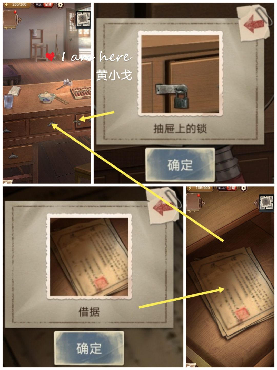 2.桌子抽屉:【借据】、【抽屉上的锁】