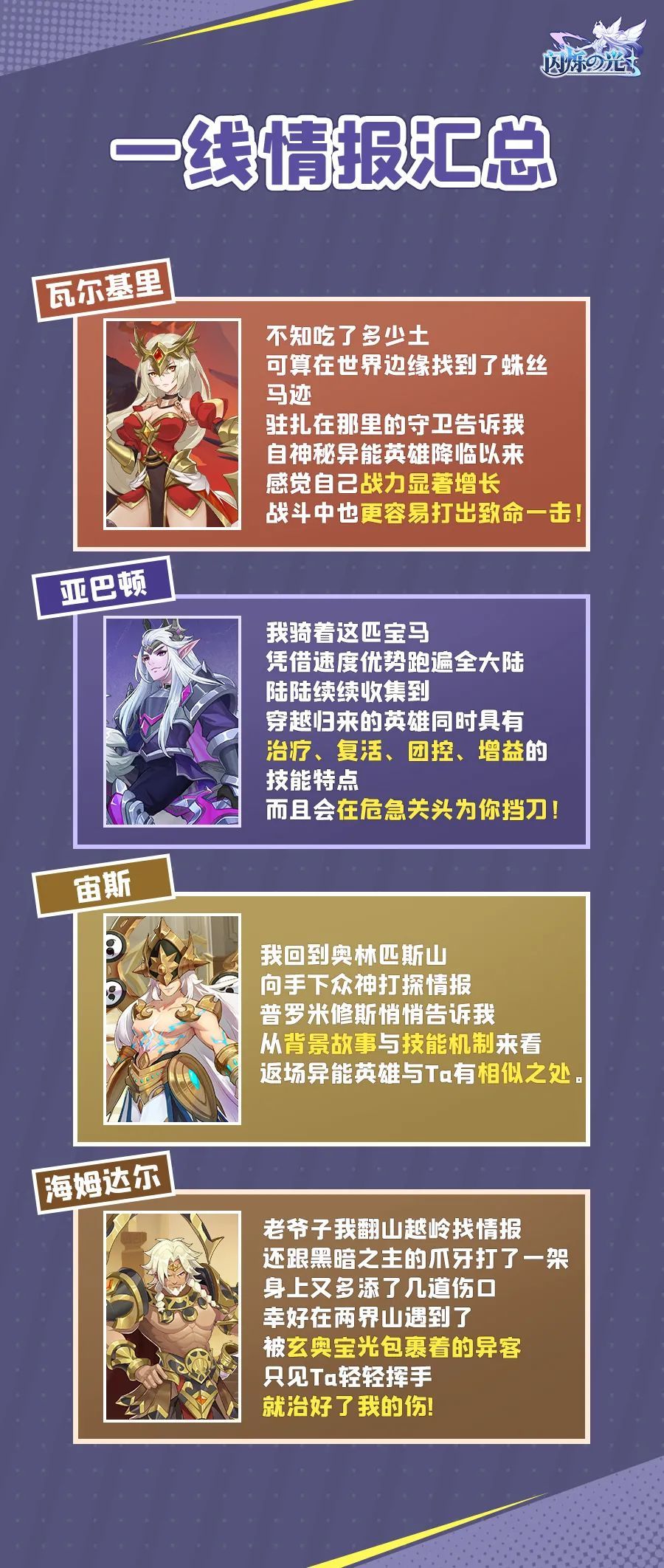 看完上面的信息,各位冒险者能否判断出谁的情报有误,以及最终的返场异能英雄身份呢?
