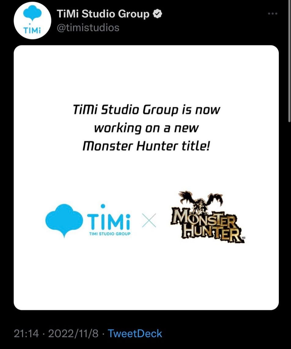 腾讯天美将与卡普空合作推出《怪物猎人》手游