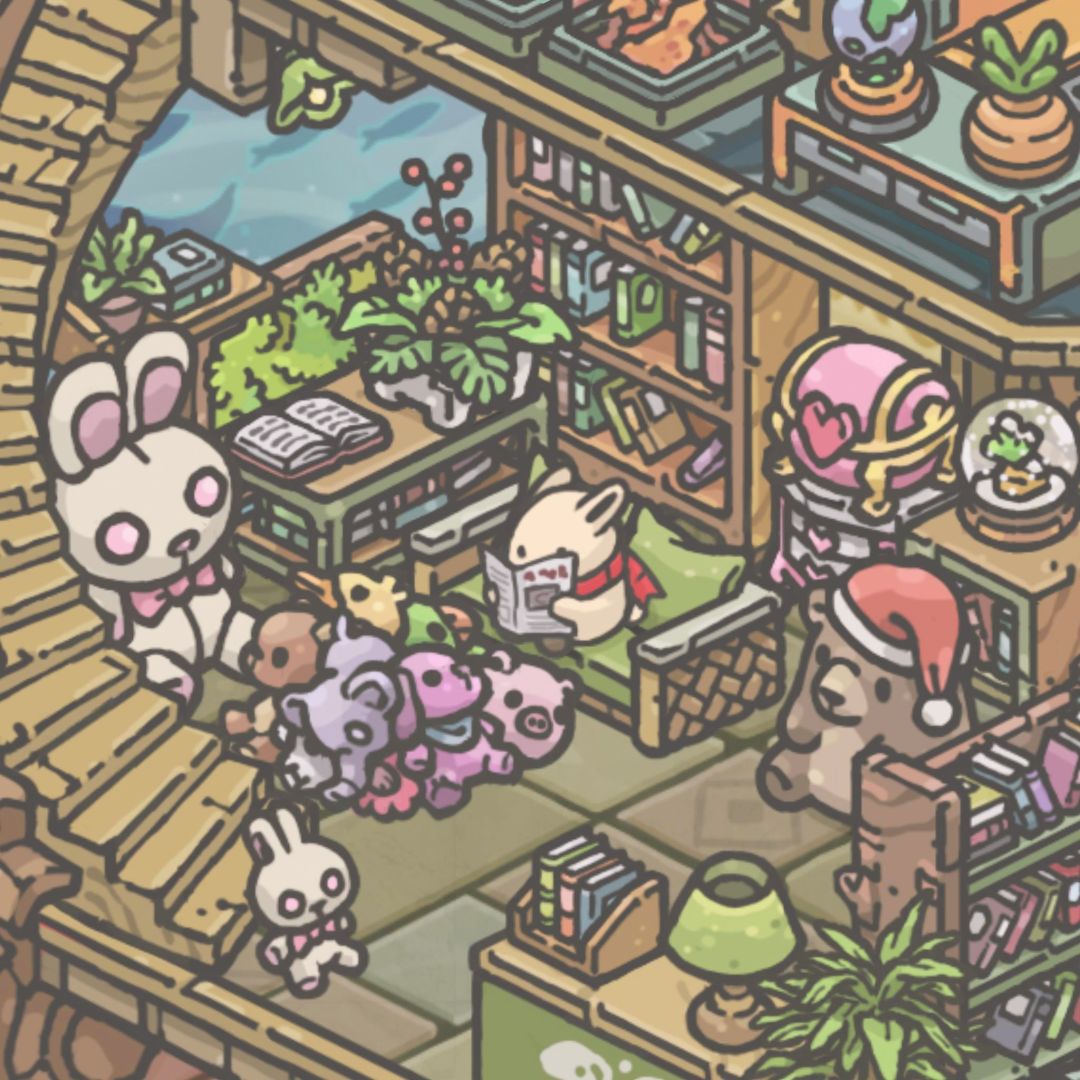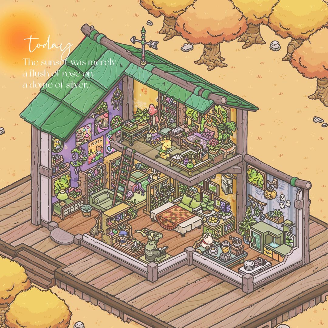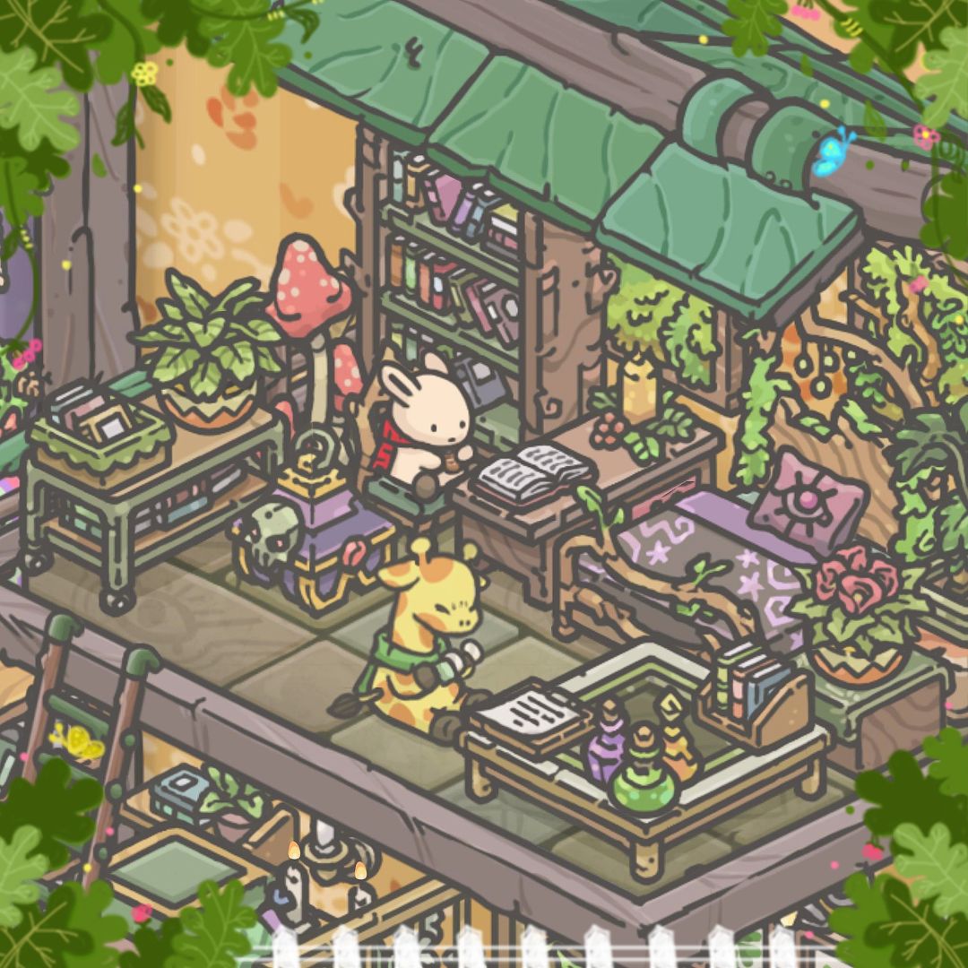很喜欢房间被堆满的感觉,每个角落都可以是一个小世界。兔兔的树屋比较混搭,无论是自然的山野丛林还是科幻的星际城市都让人无限向往,我的兔兔要从无垠海岸冒险到浩瀚宇宙啦~总之这是一只既痴迷魔法又崇尚科技的兔子🥰