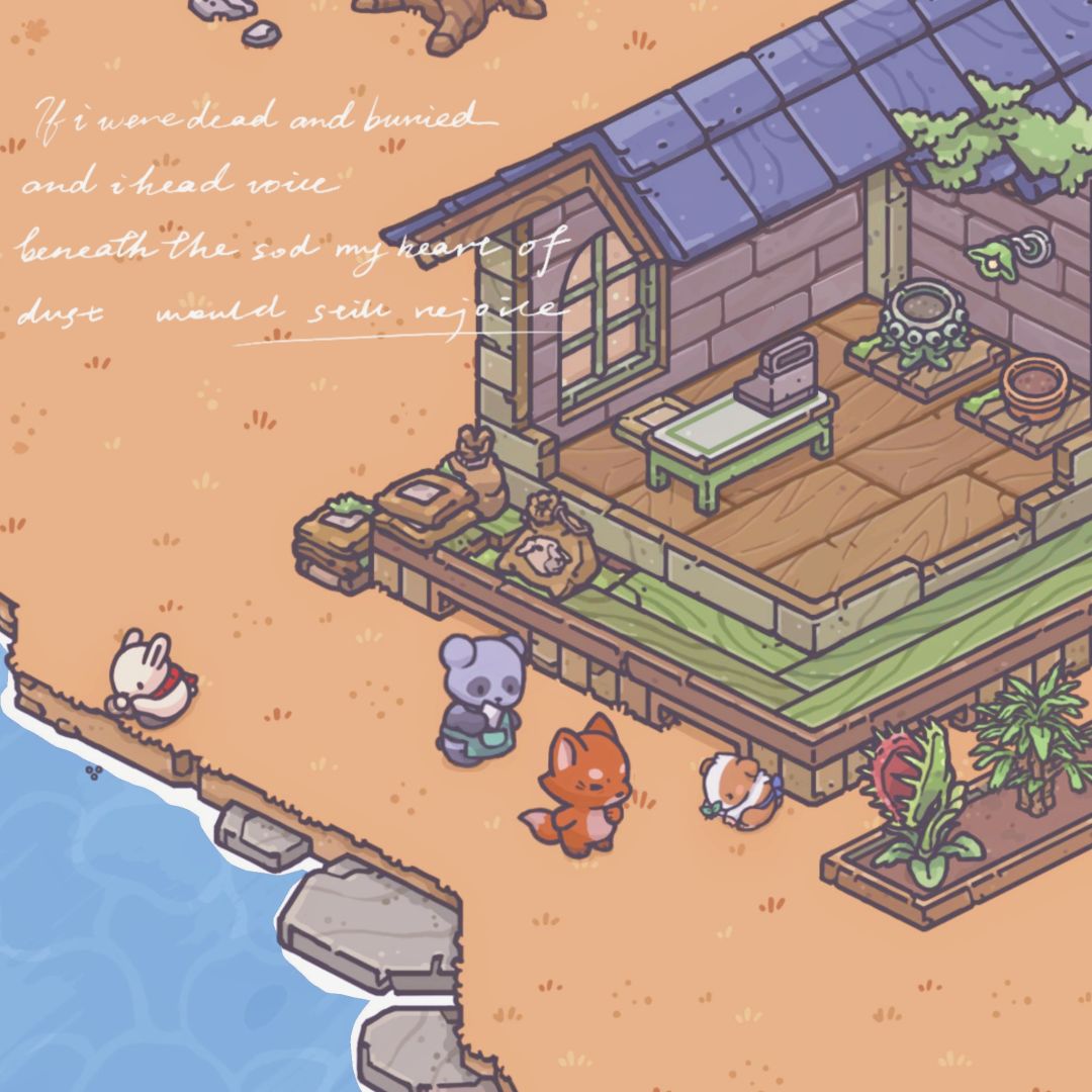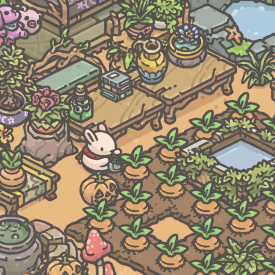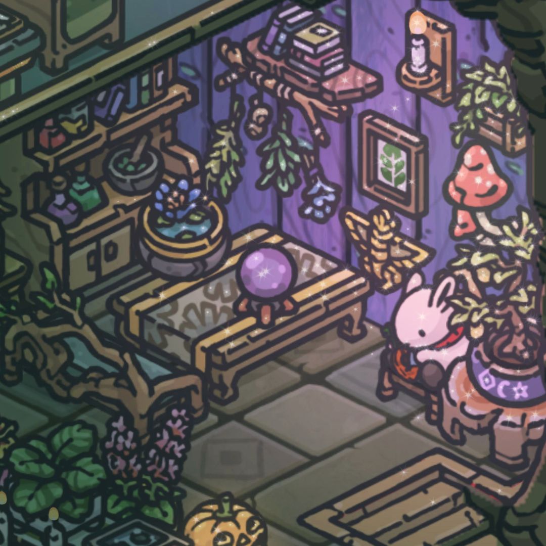 👏来了我兔兔的花园,整体是个有点诡异神秘的地方,目前还没完全装修好,没刷到合适的家具,待定……我喜欢这个挺有魔法氛围的小木屋哈哈