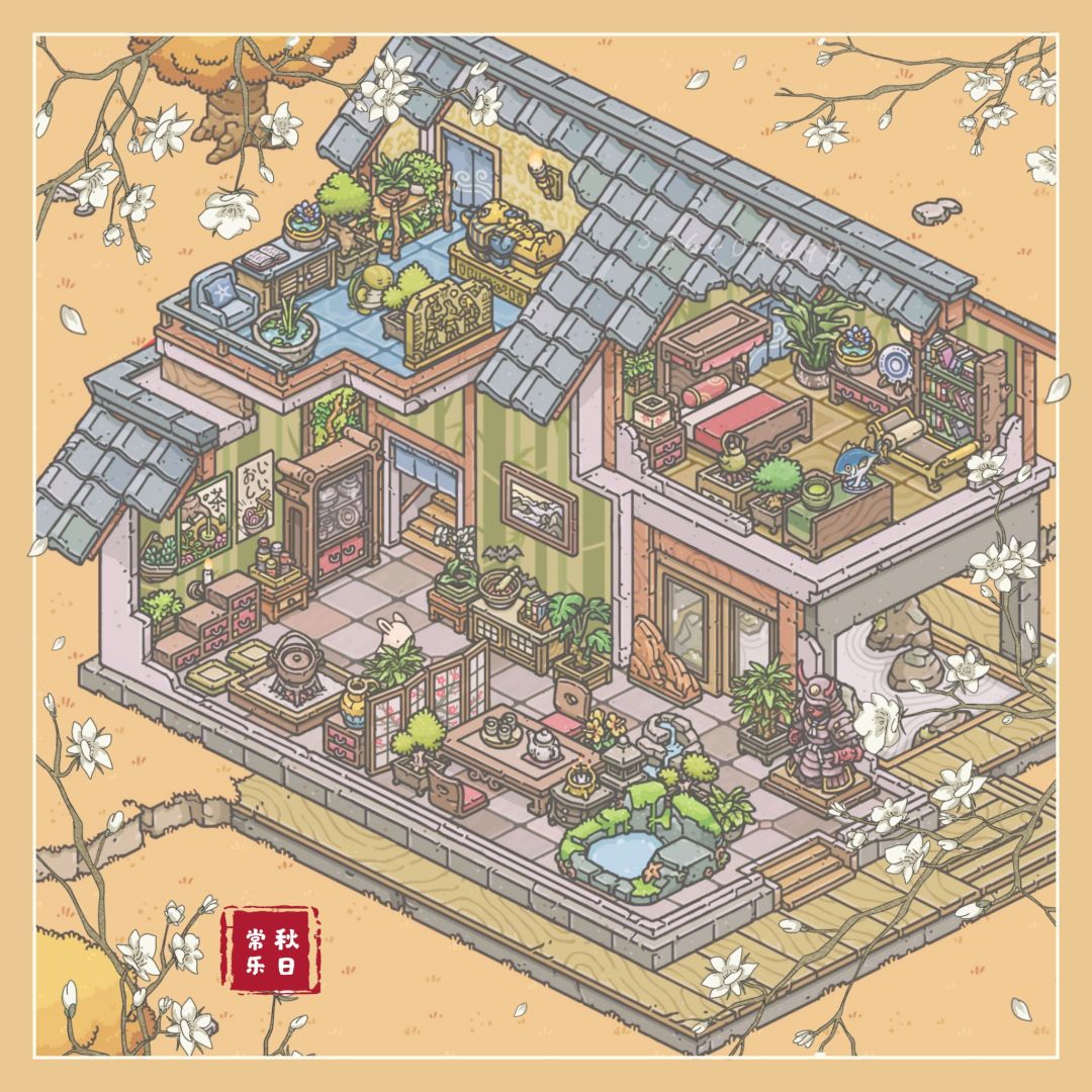 ✨莫卡家总体偏古风,有偏向背景音乐 。其实不太满意,想着有些樱花家具蛮适合放他家的但是我还没刷到那些,后面有了再改改。