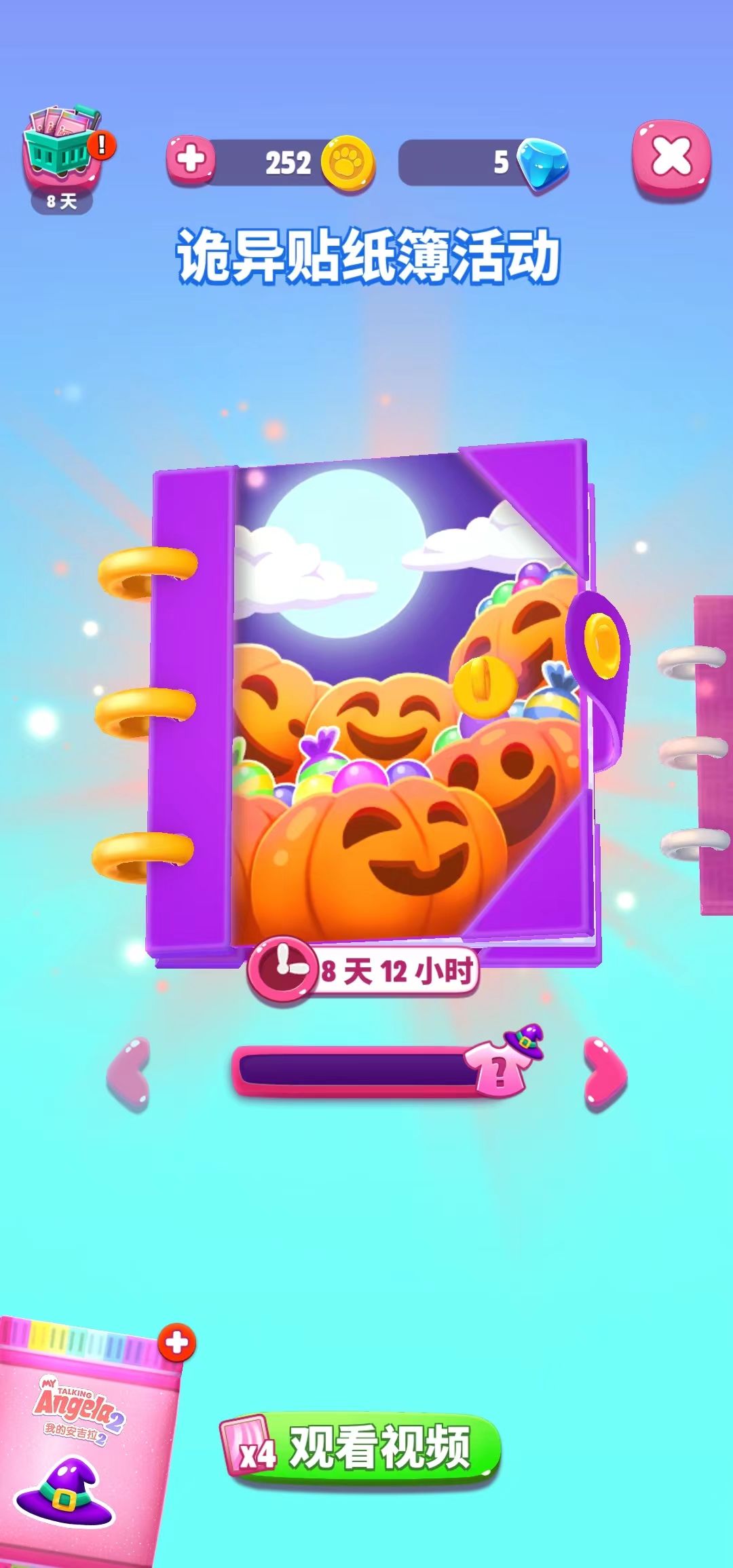随着漫天飞舞的卡牌纷纷落下,在安吉拉的床边,也是冒出来了一本崭新的贴纸薄。新的一期贴纸薄活动叫做诡异贴纸簿活动。可不要被名字吓到了哦,其实是为了庆祝万圣节的到来,我们的安吉拉也是换上了神秘诡异的衣服,特别有氛围感。想要收集这一期的特殊奖励,就快来抽卡吧!