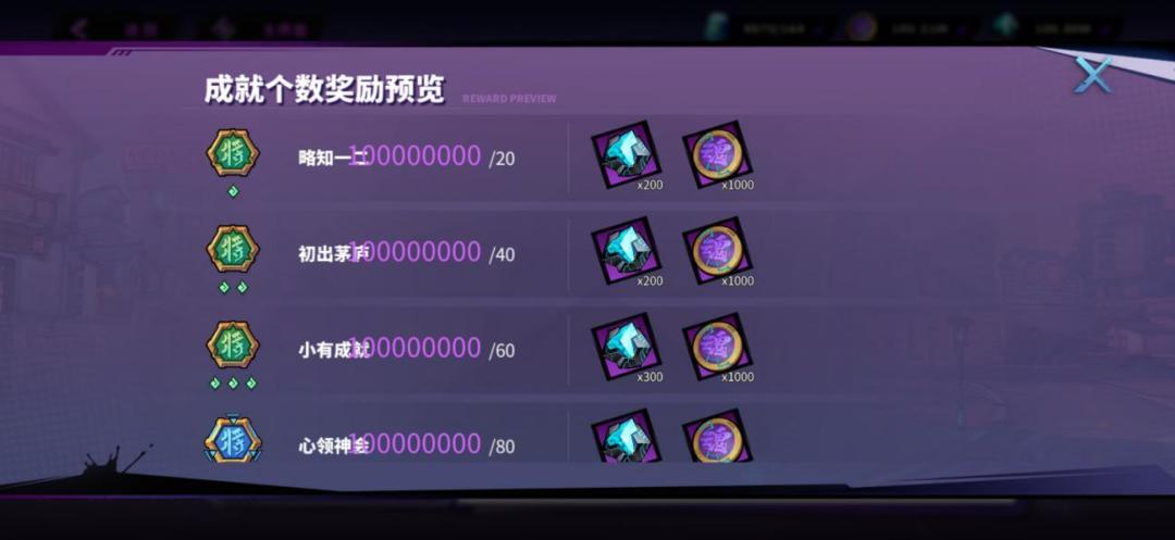 个人成就是展示玩家成就型任务的功能,每个成就会有较长的完成线,分成不同的小阶段提高玩家完成成就及获得奖励的体验。