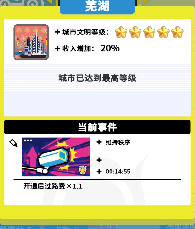 游戏胜利后,小游戏所在的路段对接的两个城市会出现维持秩序的事件,开通后有助于总体收入的加成哦!
