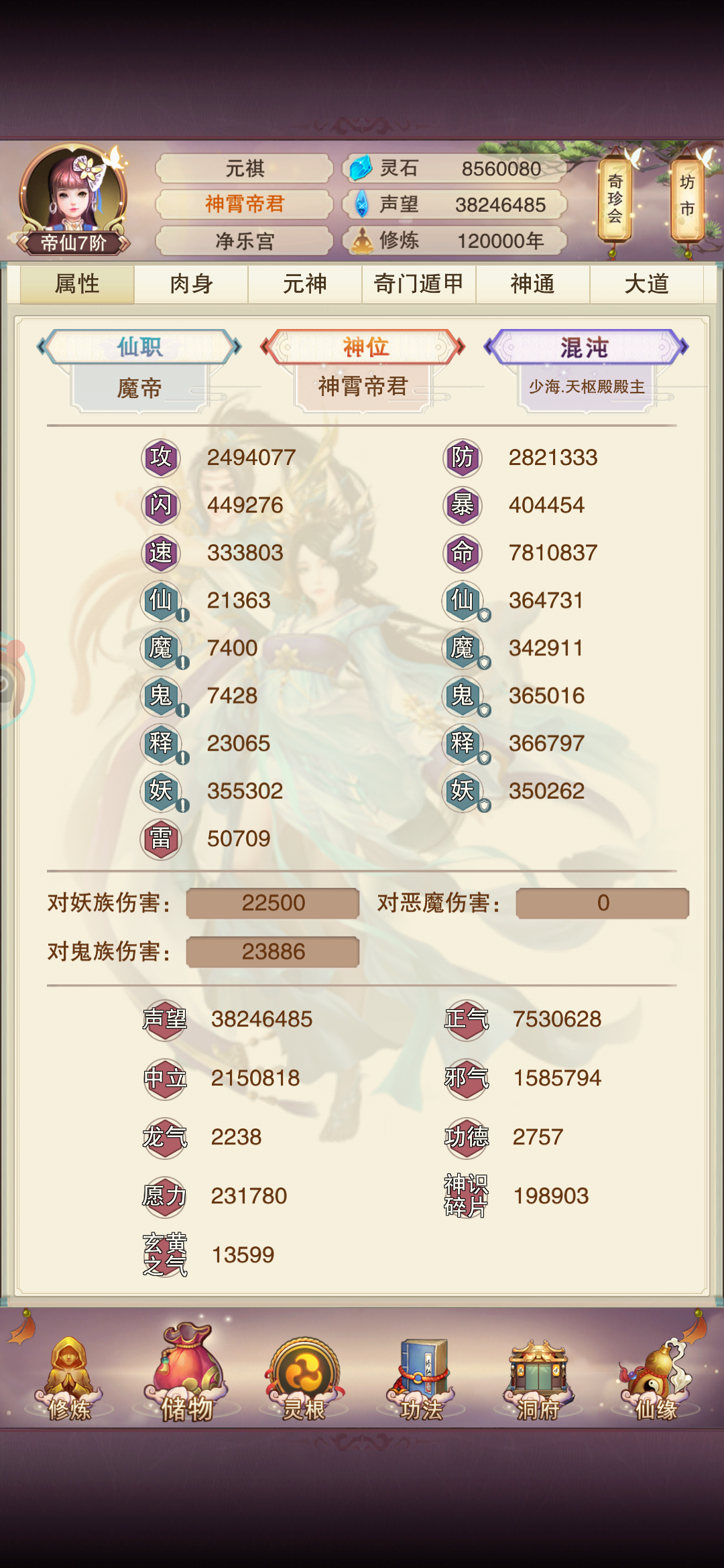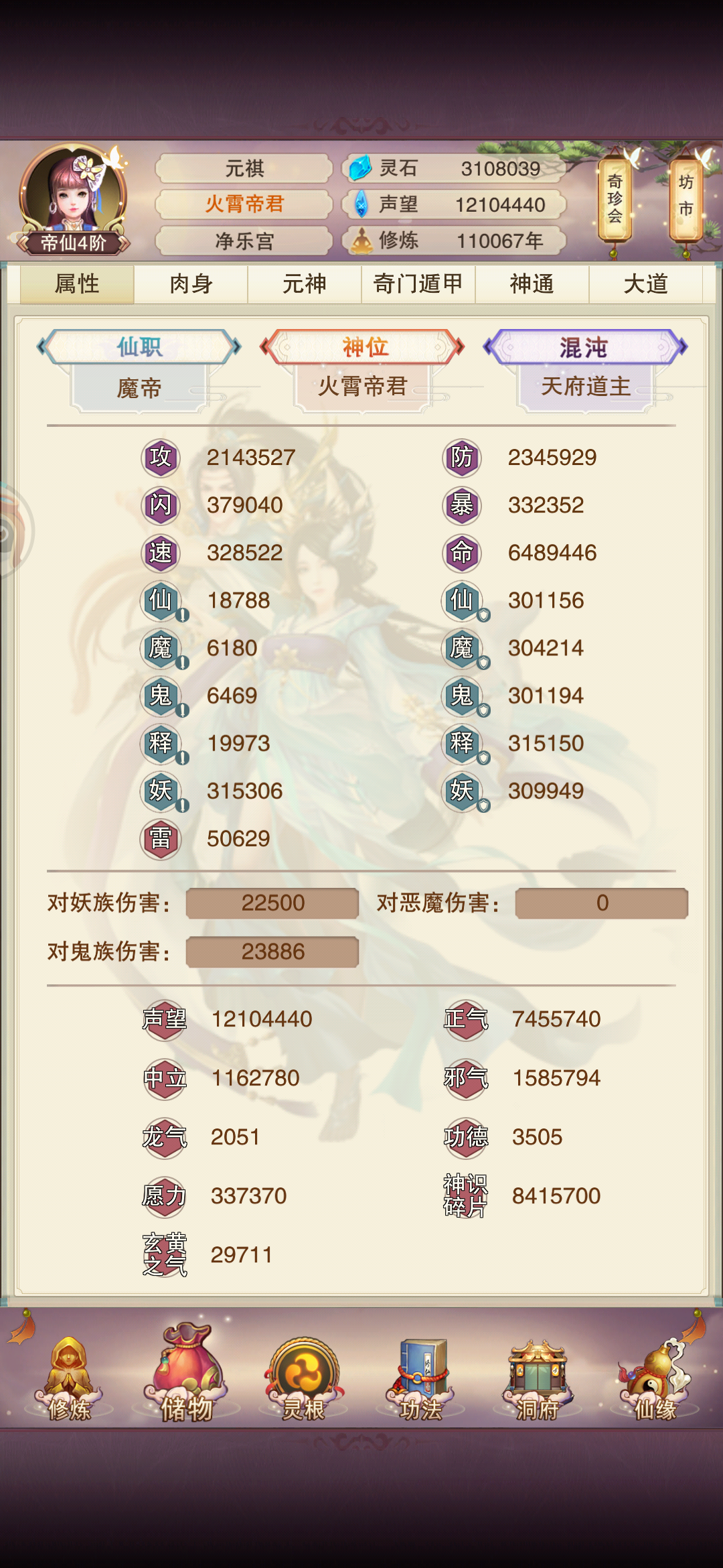 12万年纪念,道心依旧,我还能坚持,明天上位6⭐道主。这一万年攻击提高35万,防御提高47万。十三万年我再来