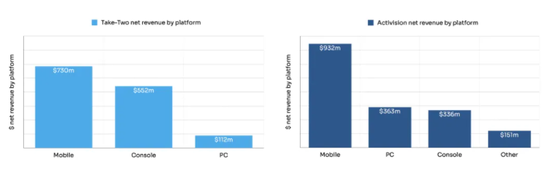 在动视暴雪和Take-Two,手游营收都占据了“半壁江山”