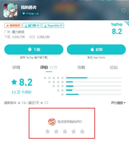 !今天上taptap一看,发现《我的勇者》的下载量已经破300万大关了!热门榜也到了第五~大家都非常开心!
