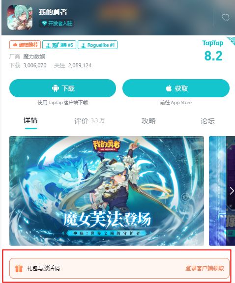 *由于TapTap平台限制,只能在TapTap App中才会显示【礼包与激活码】。