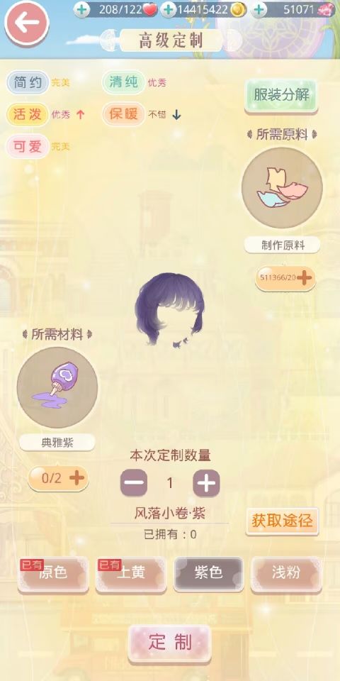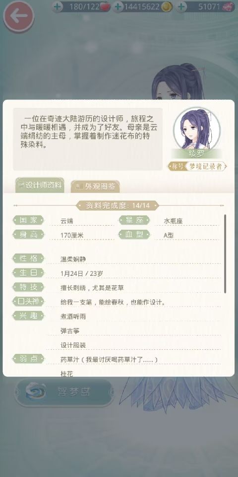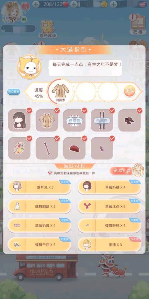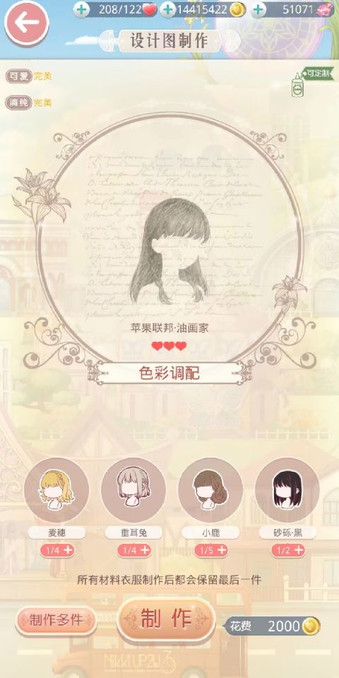 设计图制作:在这里可完成所有设计图的制作,制作服装所需要的材料不同,搭配师可将正在制作中的服装设置在主界面大喵指引内,方便查看~