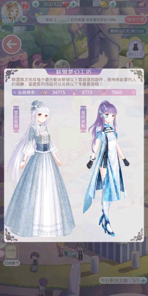 (1)委托任务:每日5次免费,得5×5个联盟币,以及星愿系列饰品;