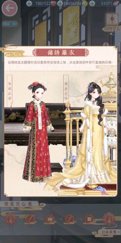 11.拾珍忆梦:可在展览内过关获得套装部件,锦绣罗衣内购买往期故宫主题时装,还可查看在辞典内查看科普。
