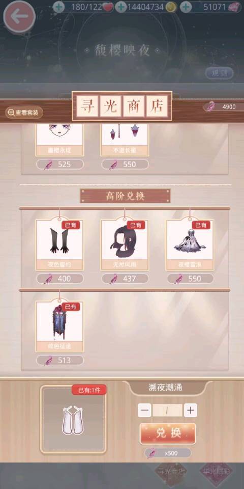 8.谜之屋:分为飘渺轩,昼夜回廊,云禅天塔,流光庭园,幻之阁,谜之阁。其中飘渺轩,昼夜回廊,云禅天塔,流光庭园免费次数为48/h一次,获取的道具可在右上角兑换中兑换喜欢的套装部件。