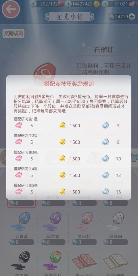 「星光币:在星光小铺中兑换各染料以及设计图」