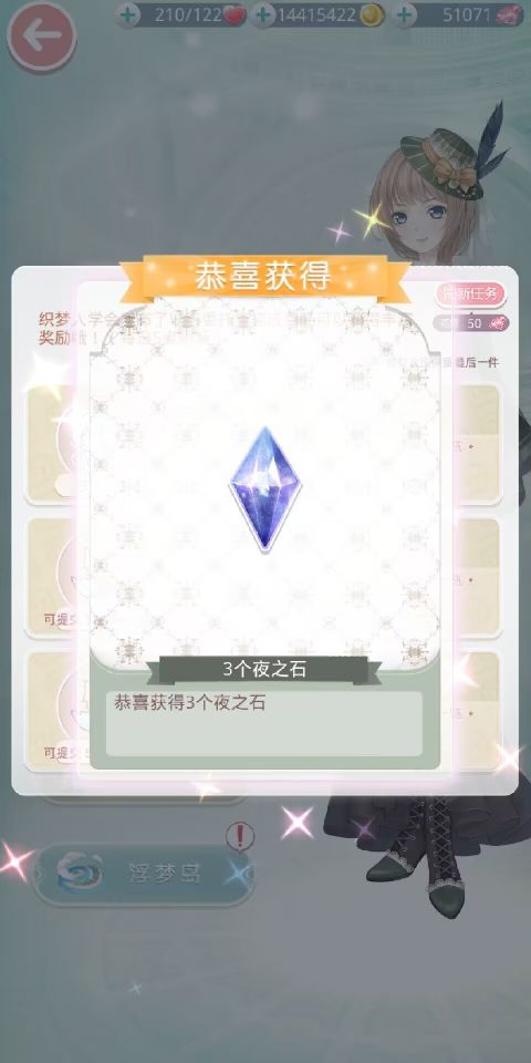 学会委托:学会每天五点都会发布随机委托,完成委托可获得爱之石,空之石,夜之石和梦之石。