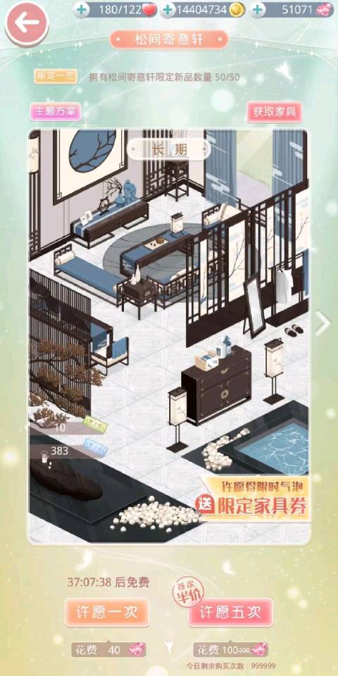 愿之庭:每38h免费一次,可用券抽取家具。