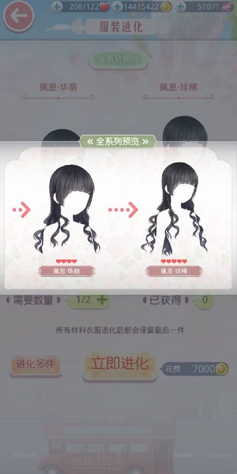 服装进化:初级服装部件达到一定数量可进化至华丽阶段。华丽服装部件达到一定数量可升级至珍惜阶段。(但也有部分部件无珍惜阶段,搭配师需要视情况而定~)