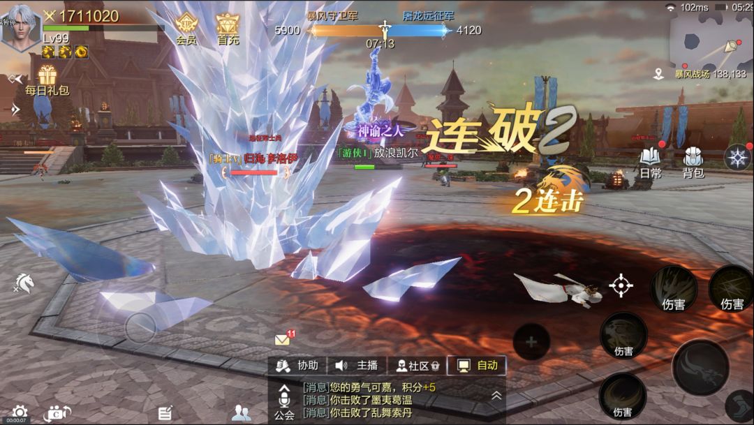 1、暴风战场是游戏内限时开启的一个跨服团战副本,玩家需要在限定时间内尽可能的击败敌方玩家获得积分,连续击败玩家的次数越高,积分累计越多,击杀掉一些中立生物可以获得额外的buff加成,击杀掉敌方的主副将可以获得更高额的积分