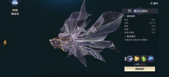 2、暴风宝箱:开启后获得SSR坐骑舞裙鱼及其碎片、初级坐骑精华以及绑钻和金币