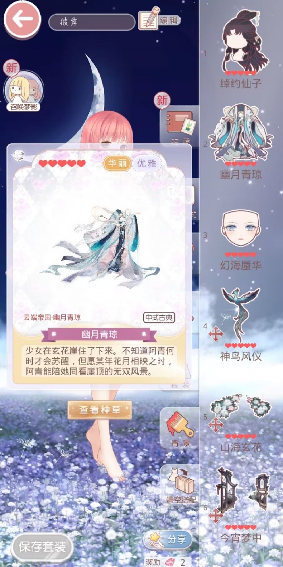 在衣柜查看部件或自由换装长按查看部件详情可“查看种草”