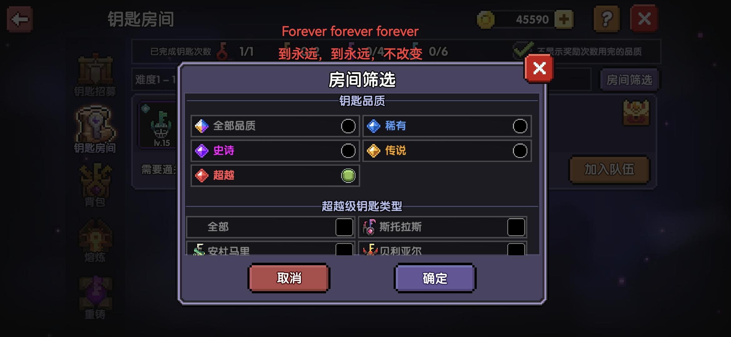 前期不要直接点匹配红钥匙,去钥匙房间哪里点房间筛选,然后点超越钥匙,再根据需要选择自己需要的钥匙(๑•́ ₃ •̀๑)