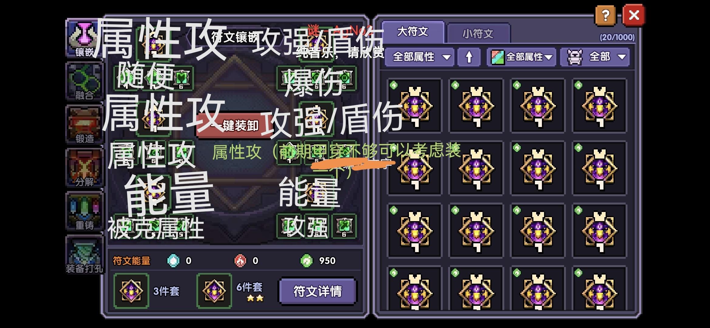 (不过只后会改,所以先别分解不同属性的小铭文)