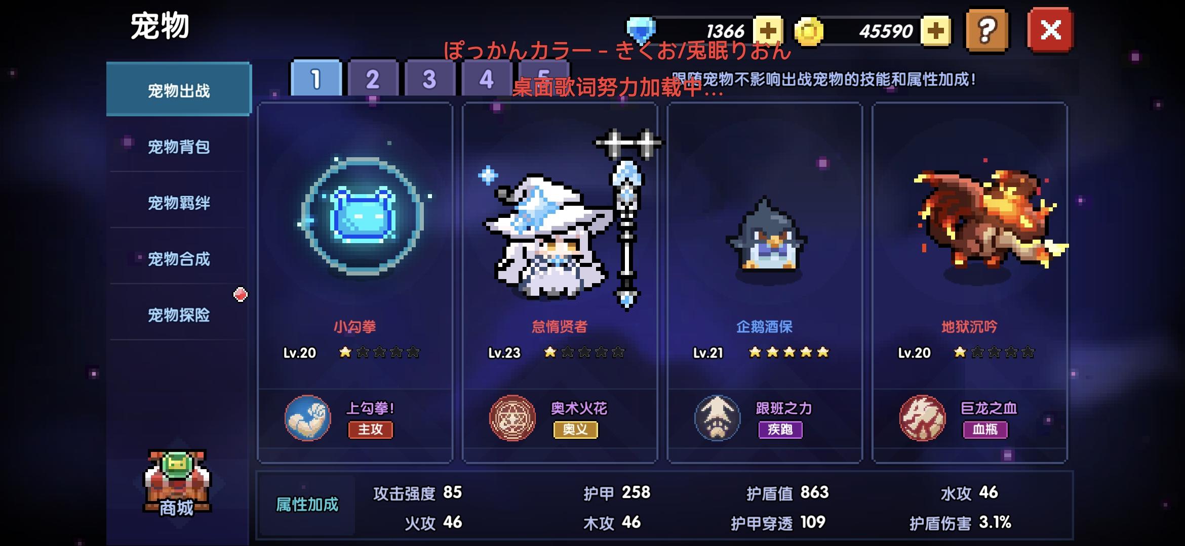 8.宠物:前期就带红宠和企鹅,没有就随便带,但不要只拉一个等级,战力是个大问题。前期就看那个增伤或减防御(企鹅yyds)