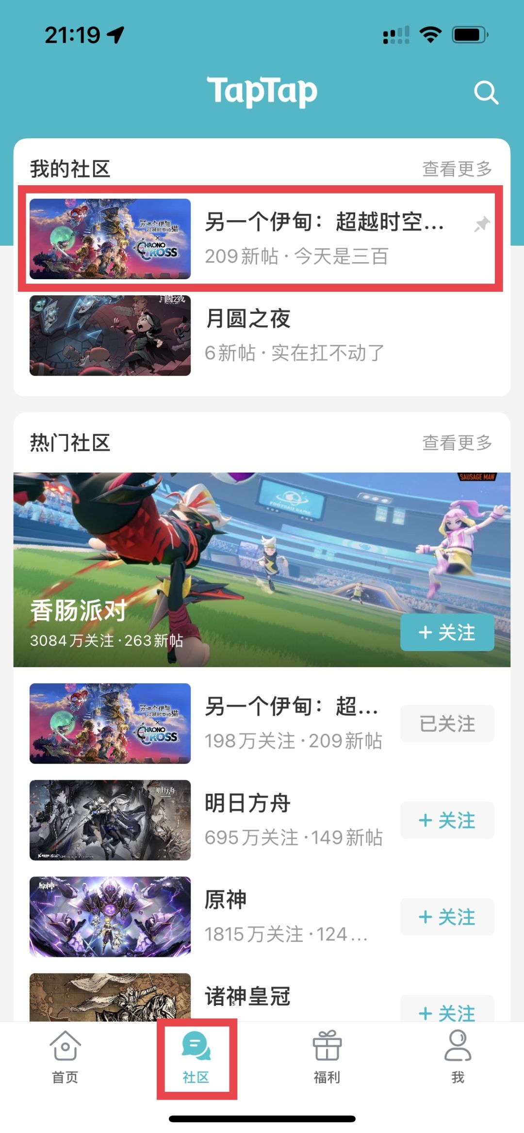 于是我放弃了「首页」「社区」「福利」三栏,移动端打开TapTap直接点击「我」,短标题的置顶贴便有了作用。