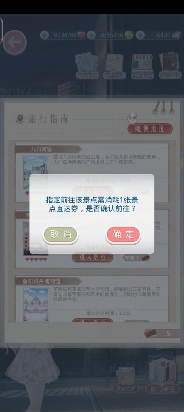 ①随便逛逛:免费的,非氪金党的巨大福利,只是不能够选择去哪个景点。推荐运气好的欧皇选择,抽到哪个算哪个,适合无目标背景的萌新或者非氪金收藏家们。