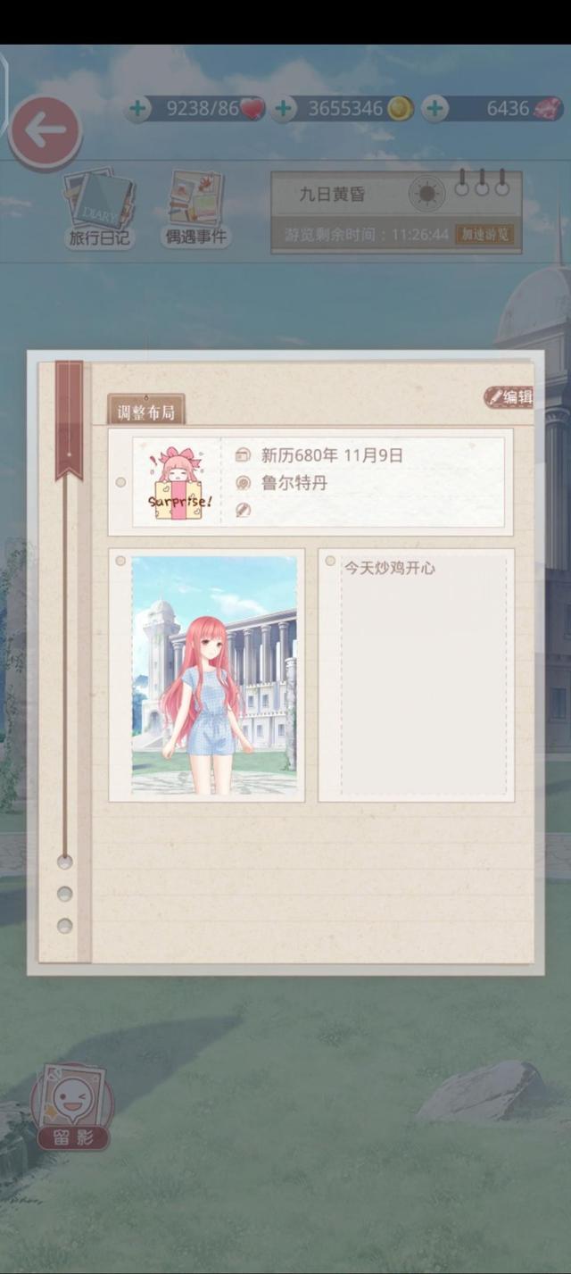 点击保存照片,女娃的照片都会保存在旅行日记中,如果你不喜欢默认的女娃装扮,还可以在城市界面,点击旅行穿搭,给女娃穿一个美美的衣服进行旅行噢,修改后,下一次照相的时候,女娃穿的衣服就是我们给她所搭配的衣服啦!