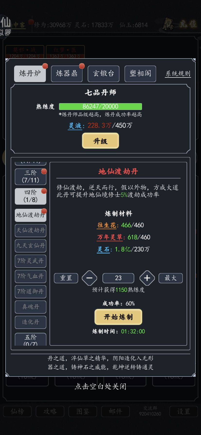 炼丹炉有必要升级吗?地仙渡劫成功率太低,需要丹药加持。