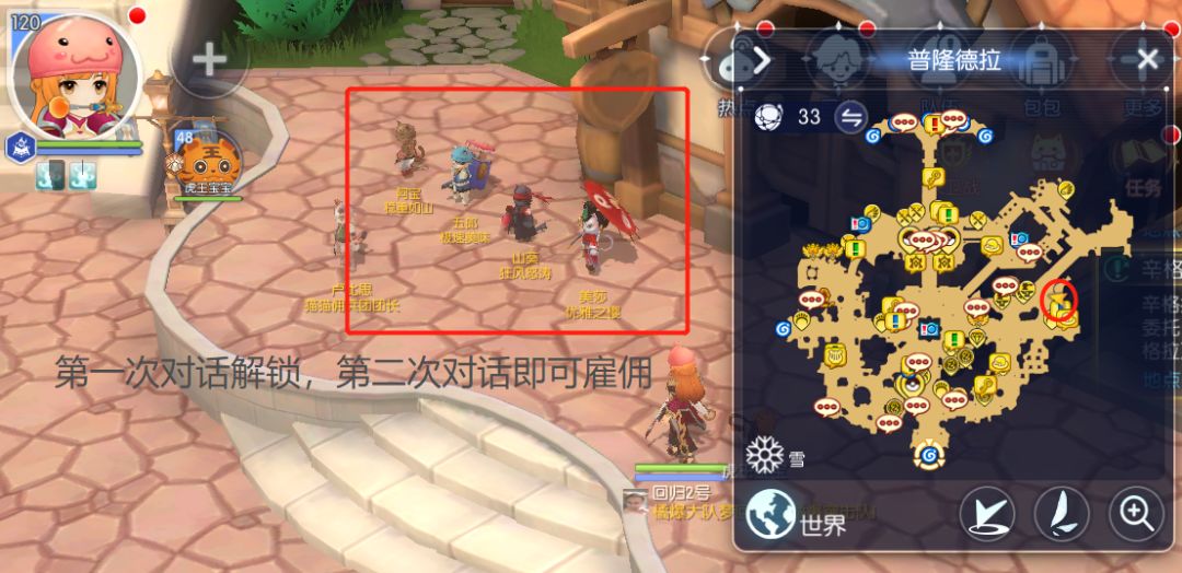 在普城找到四只猫咪,点击对应猫咪即可雇佣,可同时雇佣4只猫咪