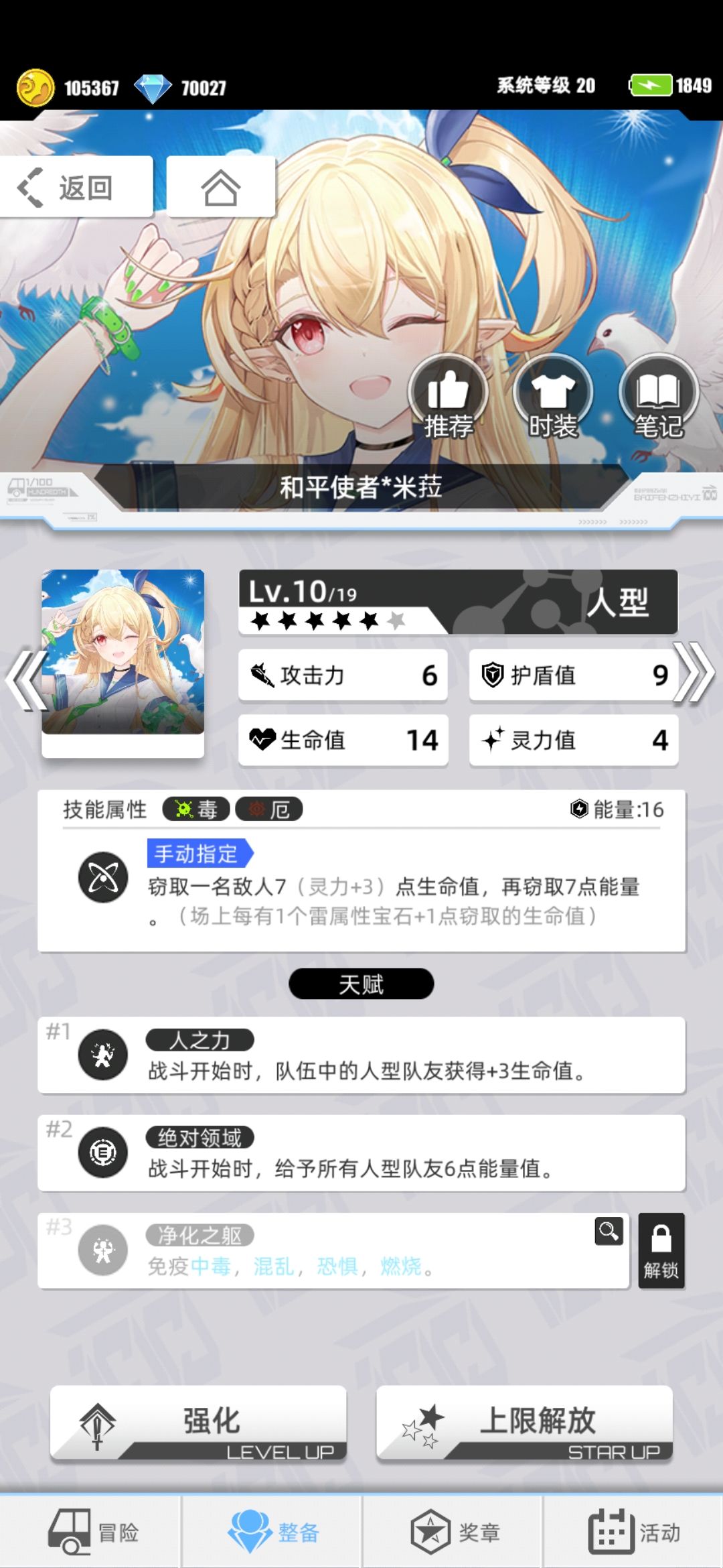 人形队最好的伙伴米拉,米拉2天赋是优先度最高的,能极大提升睡伊启动速度。