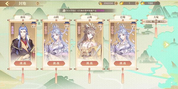 二、封地怎么玩~青鸾国有鹿泉、山阴、云州、巴蜀、大宛、大理六块封地,通关上一块封地后,可解锁下一块封地。