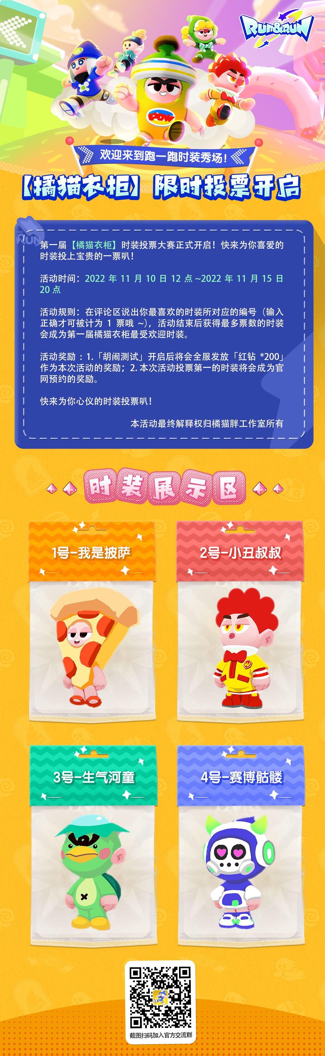 【橘猫衣柜】限时投票开启,欢迎来到跑一跑时装秀场!