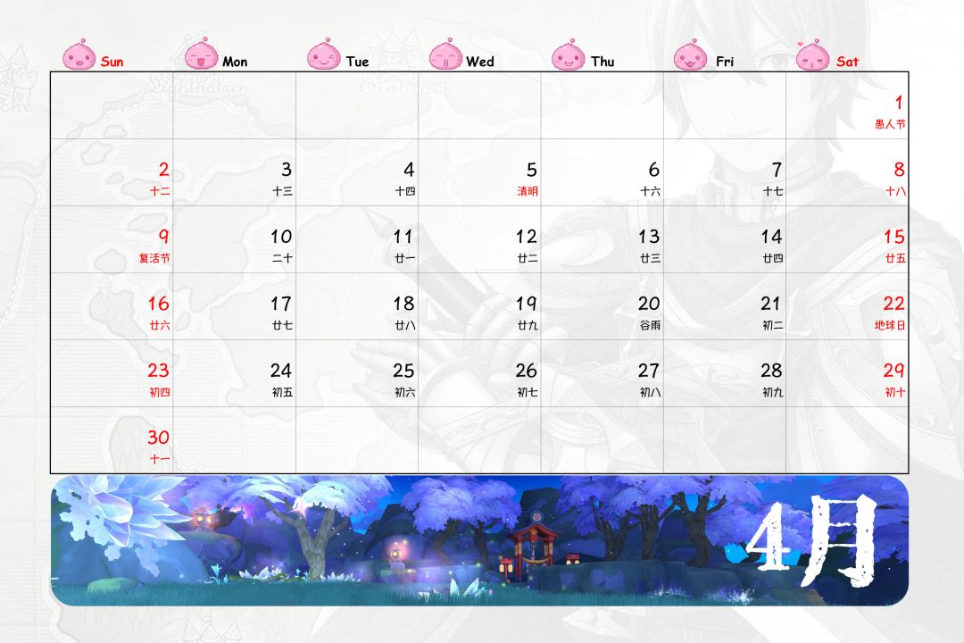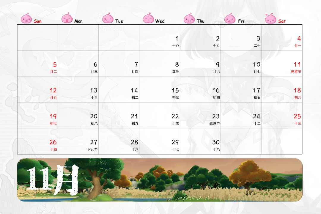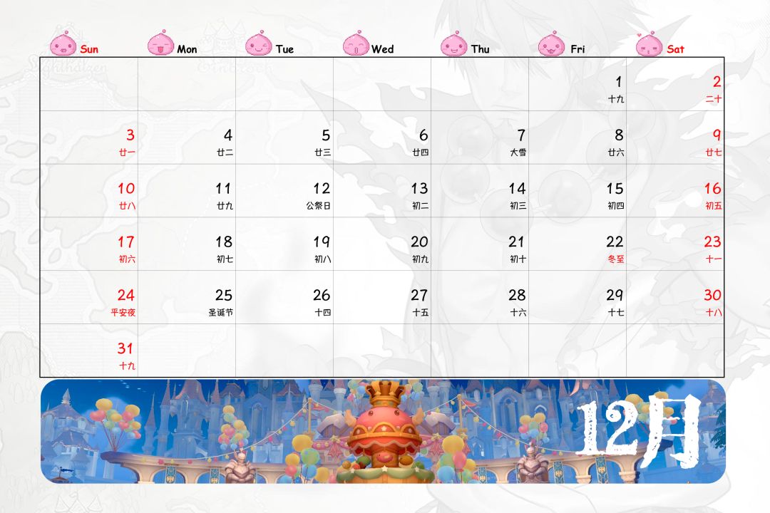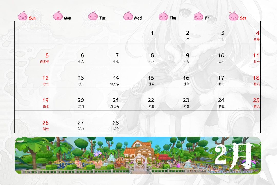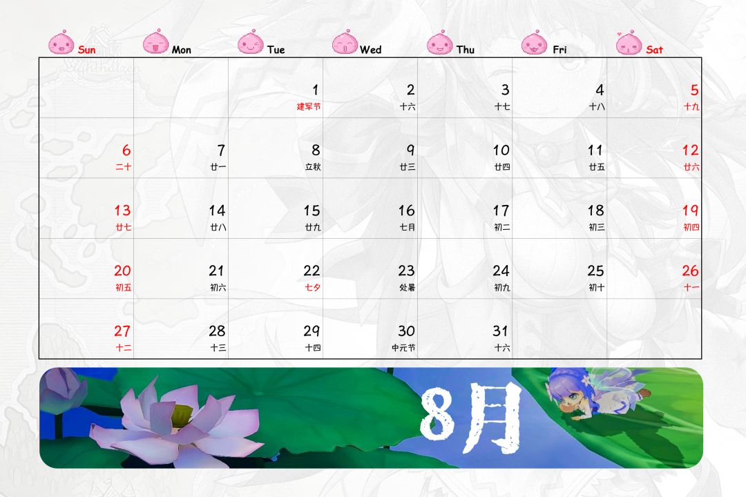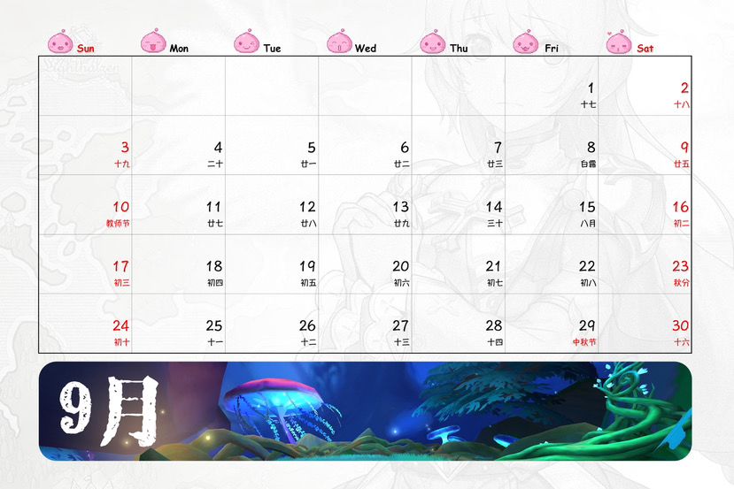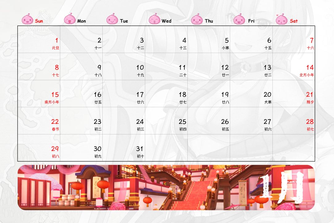 嗯,台历时间部分,由于没有找到好的素材,于是自己手工打了出来,比想象中快一些,第一次手打出一整年份的日历,还蛮有成就感的,哈哈哈……