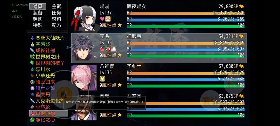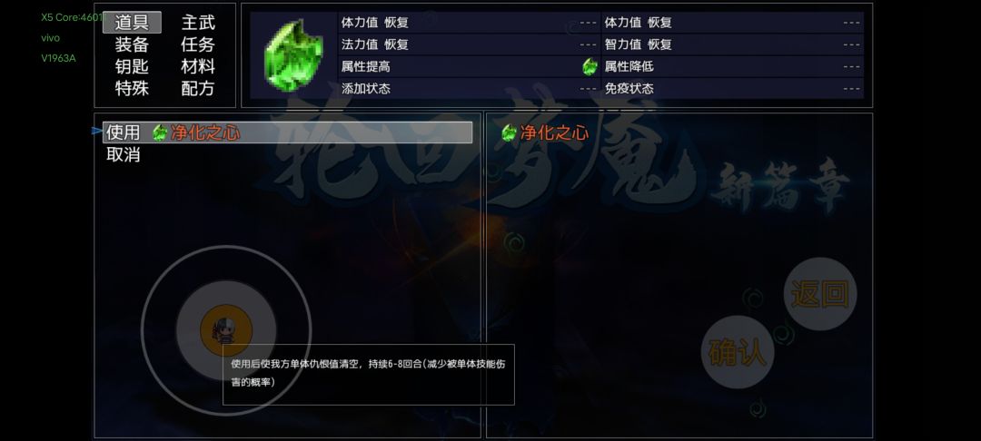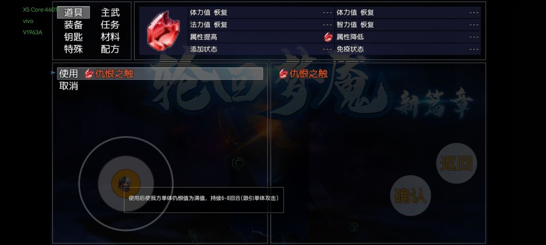 8.在战斗中使用仇恨之触或者净化之心,下个回个才生效。