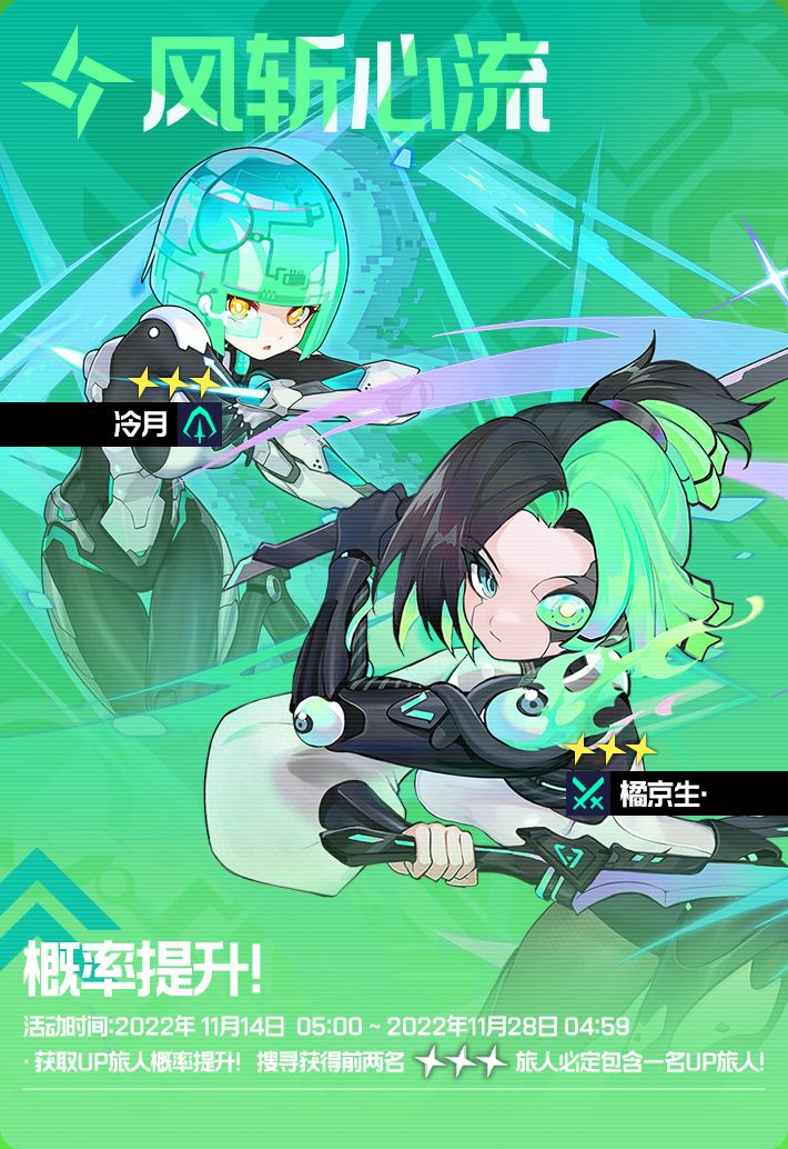 【UP卡池预告】“风斩心流”限时开放——冷月、橘京生出现概率UP!