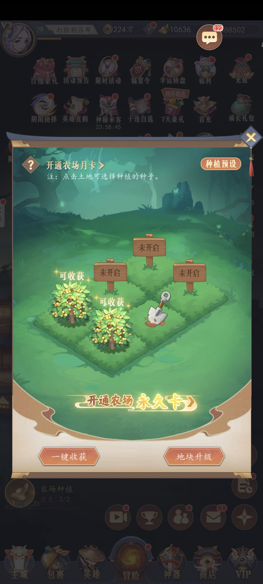 第五天开农场,这是一个非常有用的东西,建议玩的同学熬个夜,等12点更新。