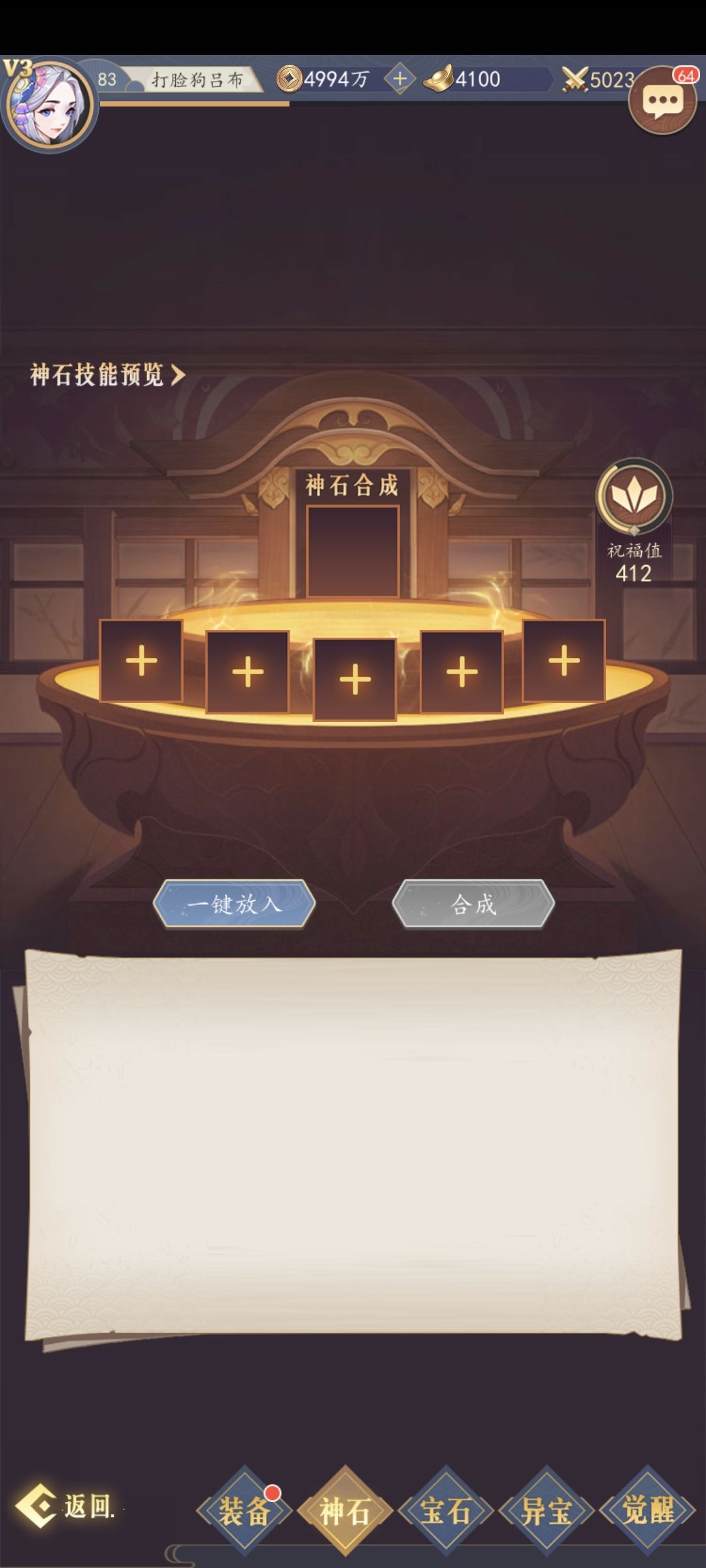 第五天是个非常关键的时间点,今天开始装备合成到三星紫色即可,三星紫色以上的一个都别去合成,一是贵,二是浪费。贵我相信大家都能理解,浪费这个第八天和你们解释。