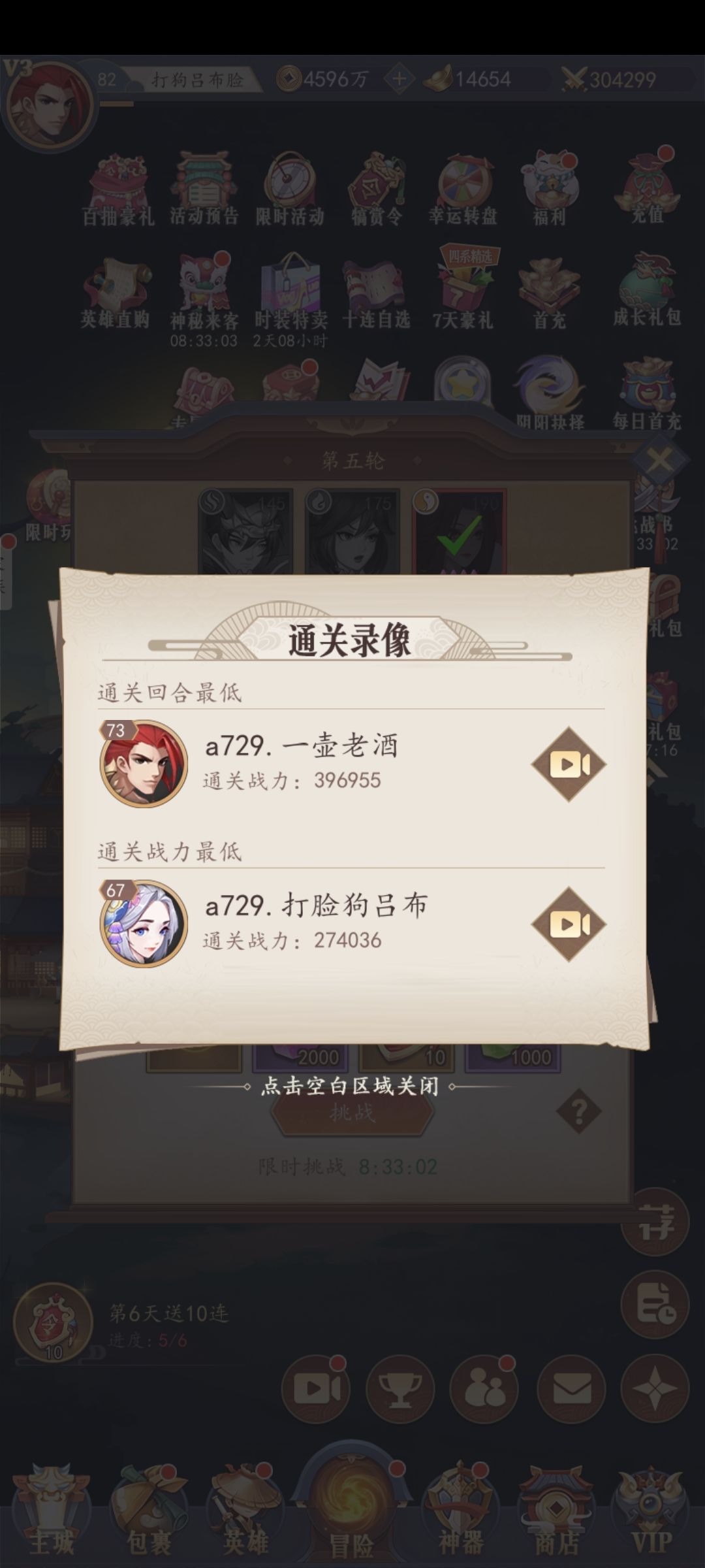 升六星这边可以卡bug,七天登录活动加起来送30个回退丹的,五个回退丹可以回退一个六星。回退以后再升级又会再次计算。