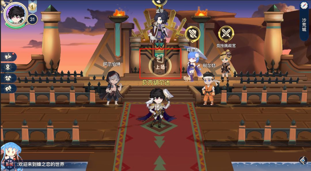 游戏内,主角等级达到13级时,会开启竞技场挑战系统。首次前往沙荒城后,点击主界面右下角【玩法入口】按钮后,就可以通过【玩法入口】界面快捷进入。