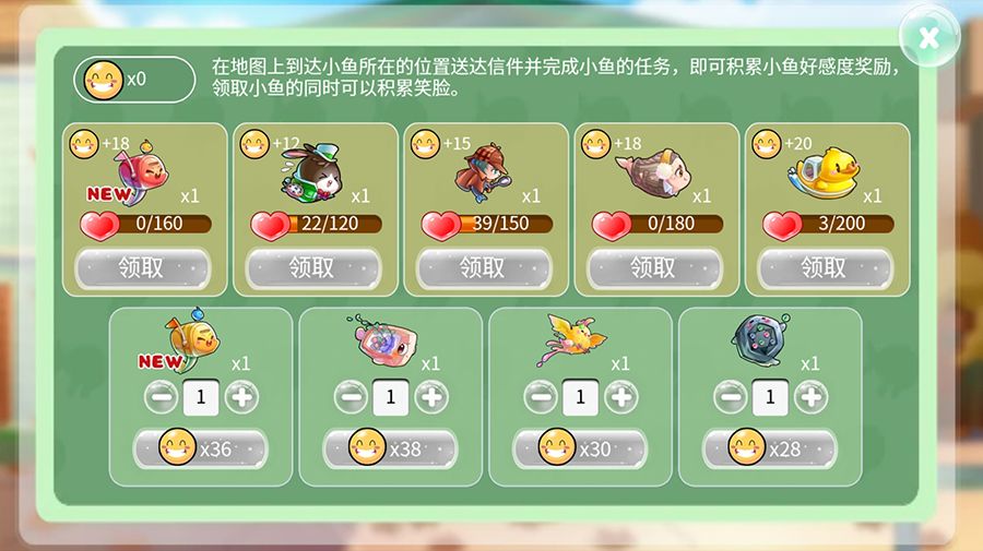在<邮递开心>环节,我们在路上完成小鱼任务累积的好感度,可随时到<邮递员奖励>环节查看,收集笑脸还可以领取更高级的活动奖励!~