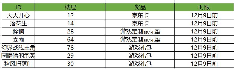 感谢各位玩家的参加,本次获奖名单如下: