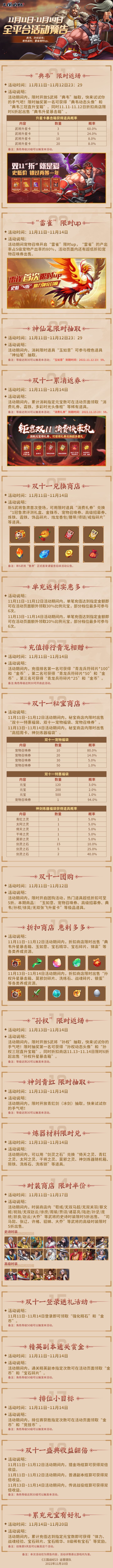 《三国战纪2》11月11日-11月14日全平台活动预告