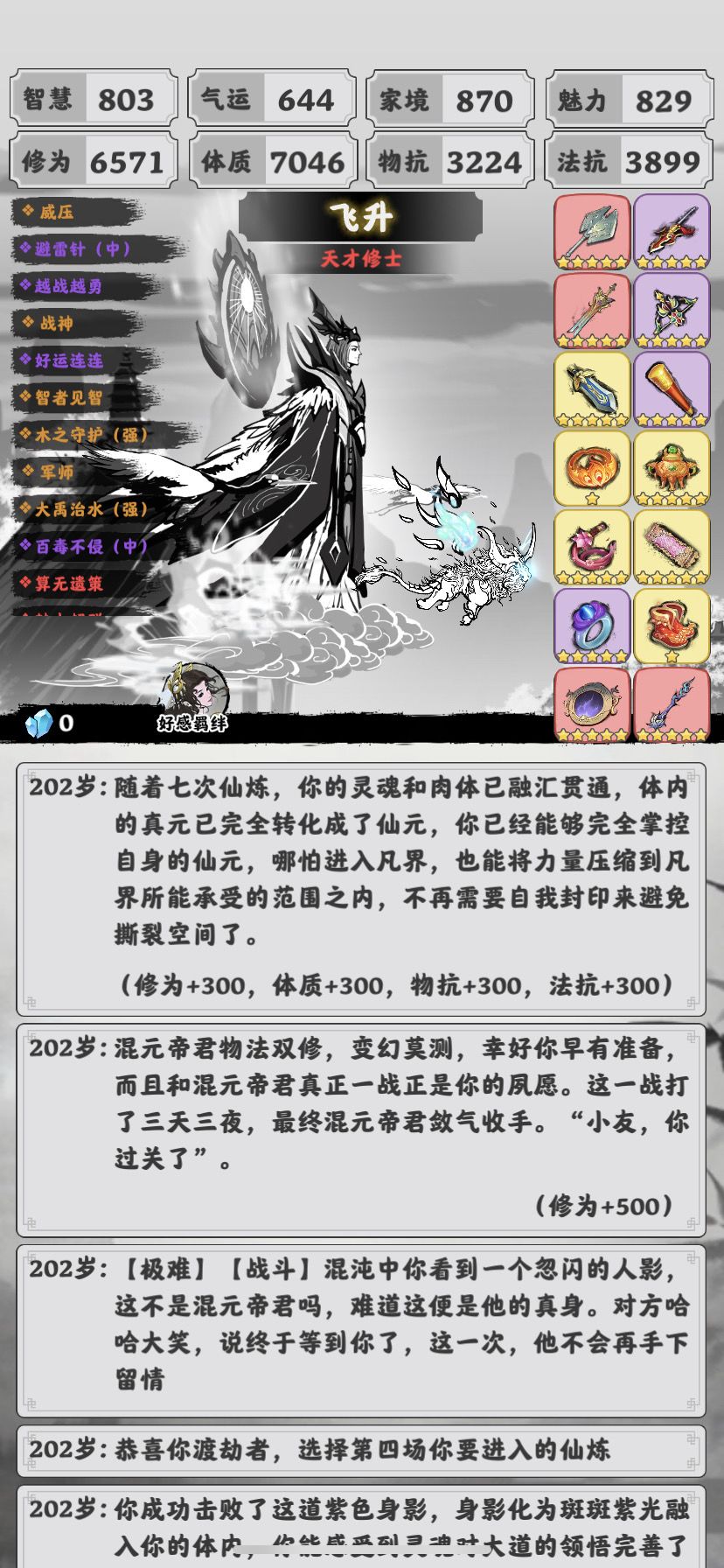 这个称号挺实用,很多人觉得天才不如往来过客,天才抗性最多需要75,100抗性没必要,体质高的仙界50抗性也够用了。这把打法比较极端出了4紫,正常出装3紫就够用了。极限体质应该能到7300左右,下个版本天才修士打新称号肯定很强势